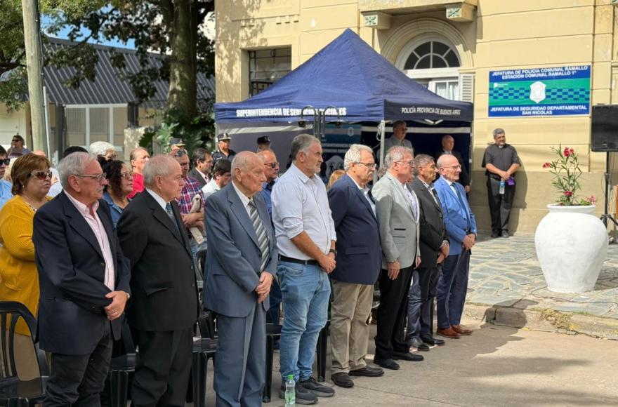 La ceremonia se desarrolló frente a la Comisaría Primera de Ramallo y contó con la presencia de autoridades municipales, representantes de instituciones, familiares de las víctimas, integrantes de fuerzas de seguridad y vecinos de la comunidad.